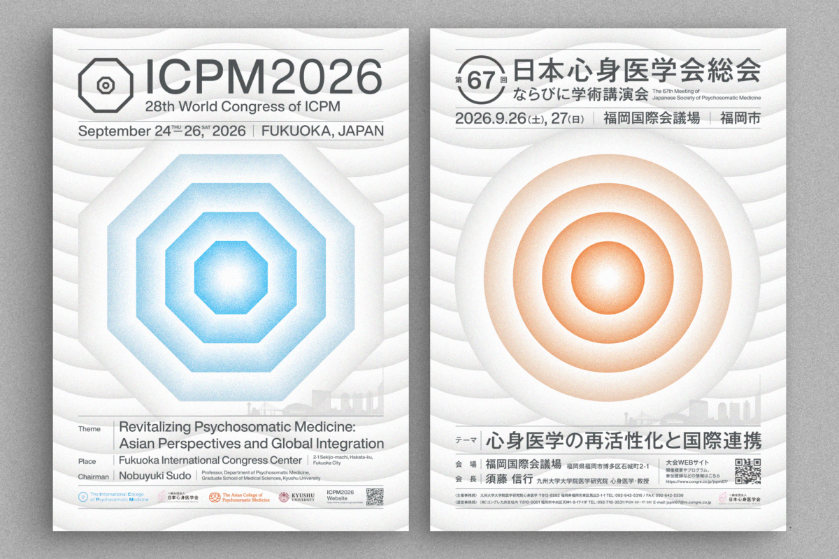 2026年に福岡で開催される世界心身医学会(ICPM)2026、日本心身医学会(JPCM)2026の告知ポスターです。