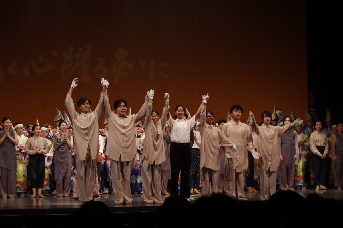 よさこい、地元のダンサー、在学生パフォーマー、役者、音楽家などが出演し、エンターテイメント性の高い演出で新しい高知大学の歩みの始まりを期待させる記念式典が繰り広げられた。